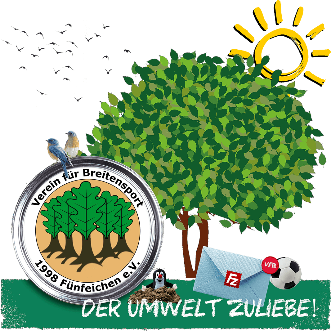 Ein ganz großes Thema ist auch die Nachhaltigkeit im Sport. Dazu hat sich auch der VfB 98 Fünfeichen bekannt. CO₂-Emissionen durch Mobilität oder Plastikmüll bei Sportveranstaltungen – all das geht mit hohen Kosten für Mensch und Umwelt einher. Schutz der heimischen Fauna & Flora, bewusster Umgang mit Rohstoffen, sind dabei wichtige Punkte unserer Bemühungen. 97 Prozent unserer Kommunikation läuft bereits digital ab. Dokumente werden dank Homepage und Cloud, jedem zugänglich gemacht, ohne Papier zu verschwenden. Stadion-Bänke werden regelmäßig aufgearbeitet, ohne Neuanschaffungen zu tätigen. Bei uns kann der Maulwurf noch Maulwurf sein, solange er sich vom Fußballplatz fern hält. Ansonsten wird ihm auf schonender Art beim Umzug geholfen.